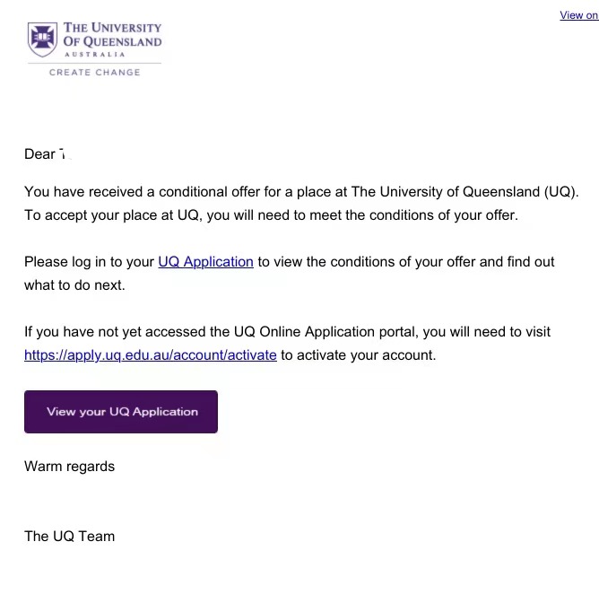 现在昆士兰审理时效都会比较慢,成绩不突出的同学,可能需要审理的时间就会久一些。如果情况还可以,学校发offer会相对快~ 同样催一波,大部分同学就是“还在审理”(图1),个别同学直接下offer(图2)。