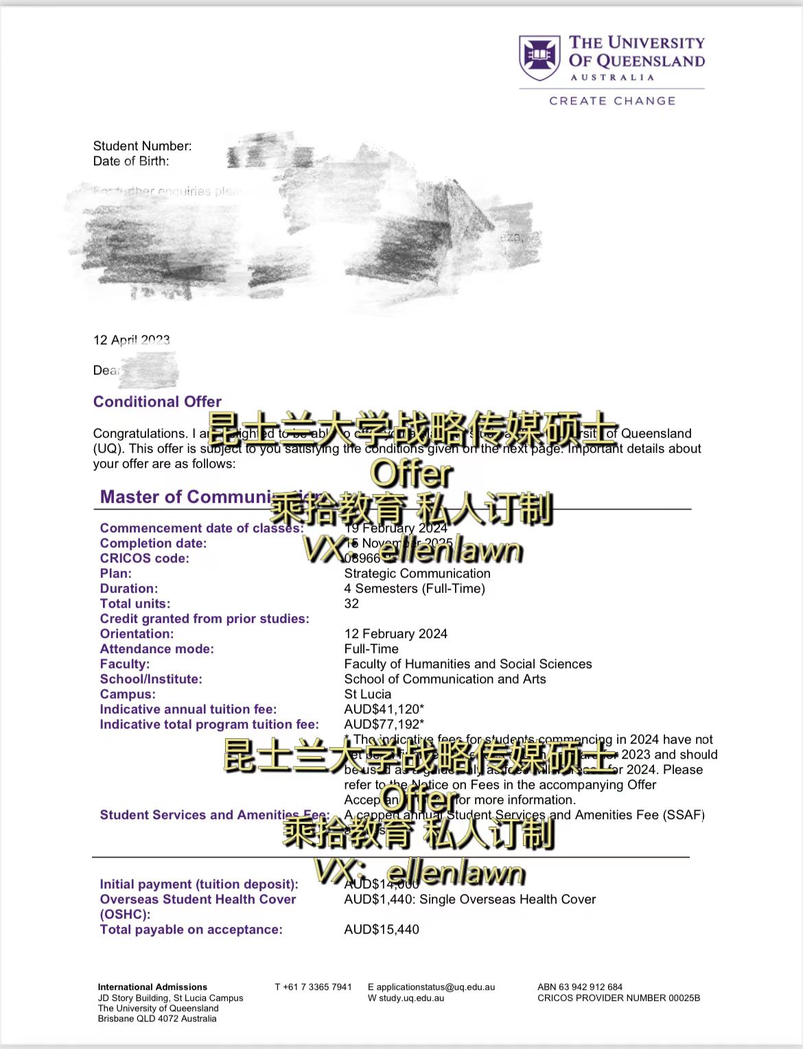录取院校及专业:昆士兰大学 战略传媒