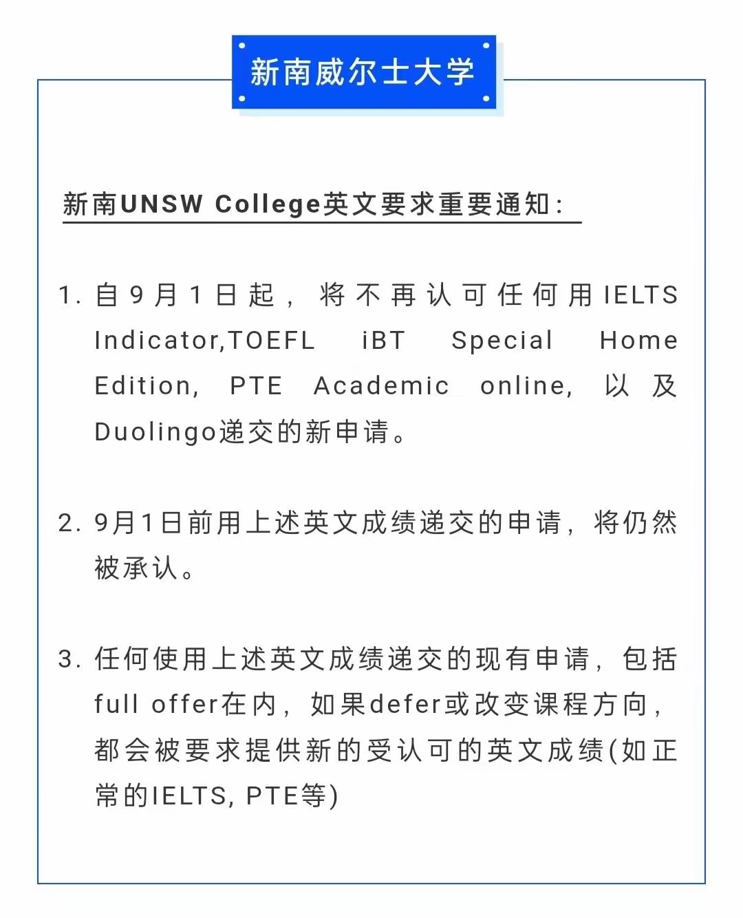 24fall墨大/悉大/新南威爾士大學留學語言要求有變化,需要詳細關註!