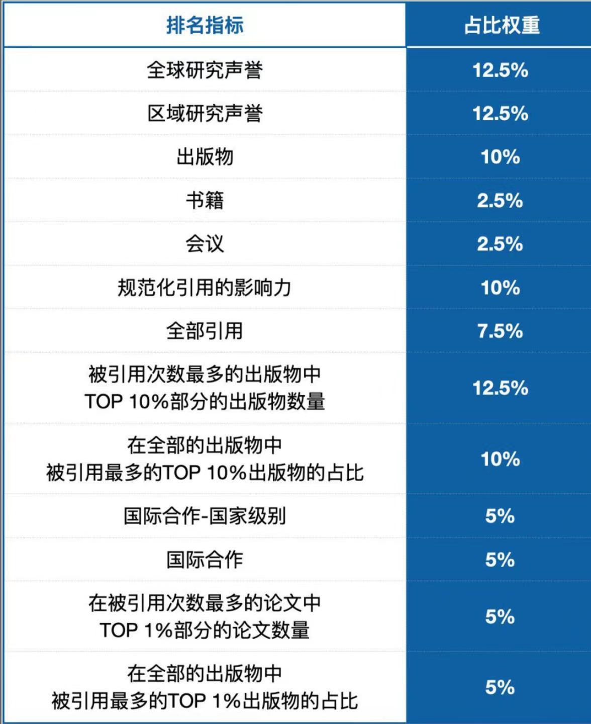 今年排名的蔘考指標以及相應權重與往年相衕,包括瞭 13箇排名指標,具體比重如下圖所示:方法與權重未作重大調整。
