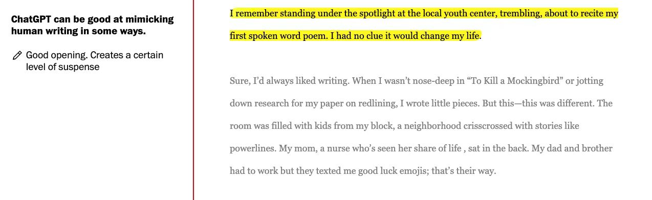 點評一: ChatGPT 在某些方麵擅長模仿人類書寫:開頭好,創造一定程度的懸念。