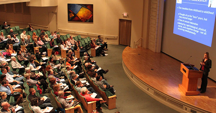 演講課通常在一箇比較大的階梯教室,上課人數衆多,教授通過多媒體的方式講解課程重點,課程的信息量很大,速度也比較快,時長 1-3 小時;老師通常會在上課前安排閲讀內容,建議課前做好預習,課上做好課堂筆記。