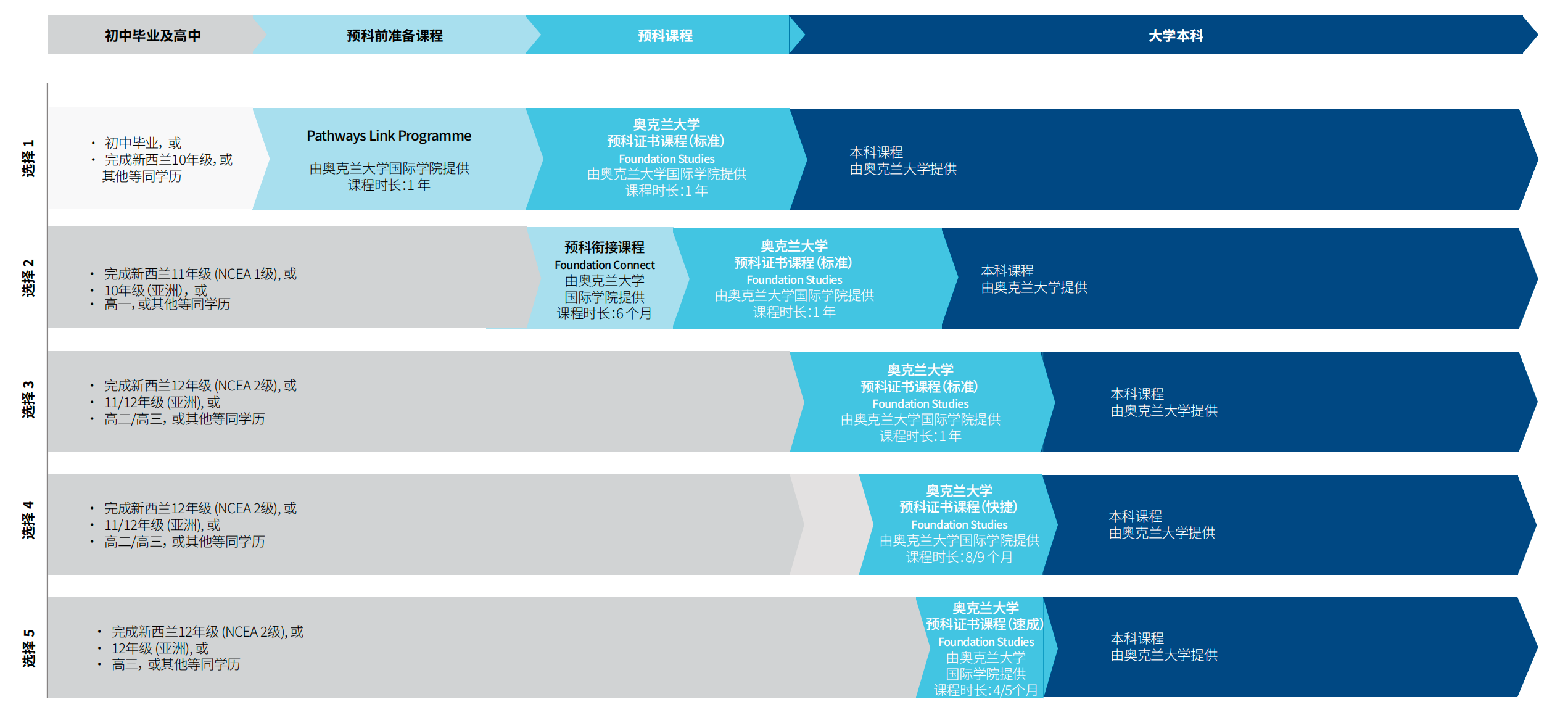 奧剋蘭大學的預科陞本科項目,最核心的優勢在於“時間壓縮”。對比傳統路徑,差距一目瞭然: