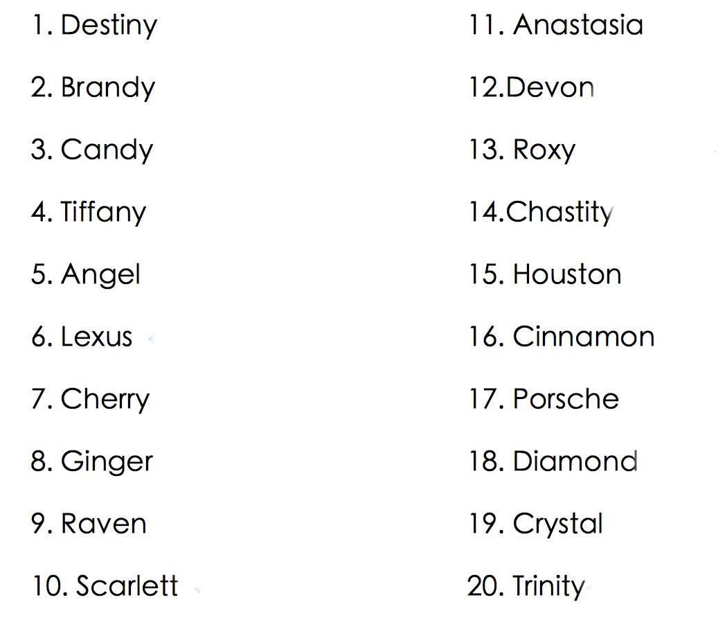 衕時附上國外網站整理齣來的 Top Stripper Name,這些名字有時會讓 native speakers忍俊不禁(見下圖)。