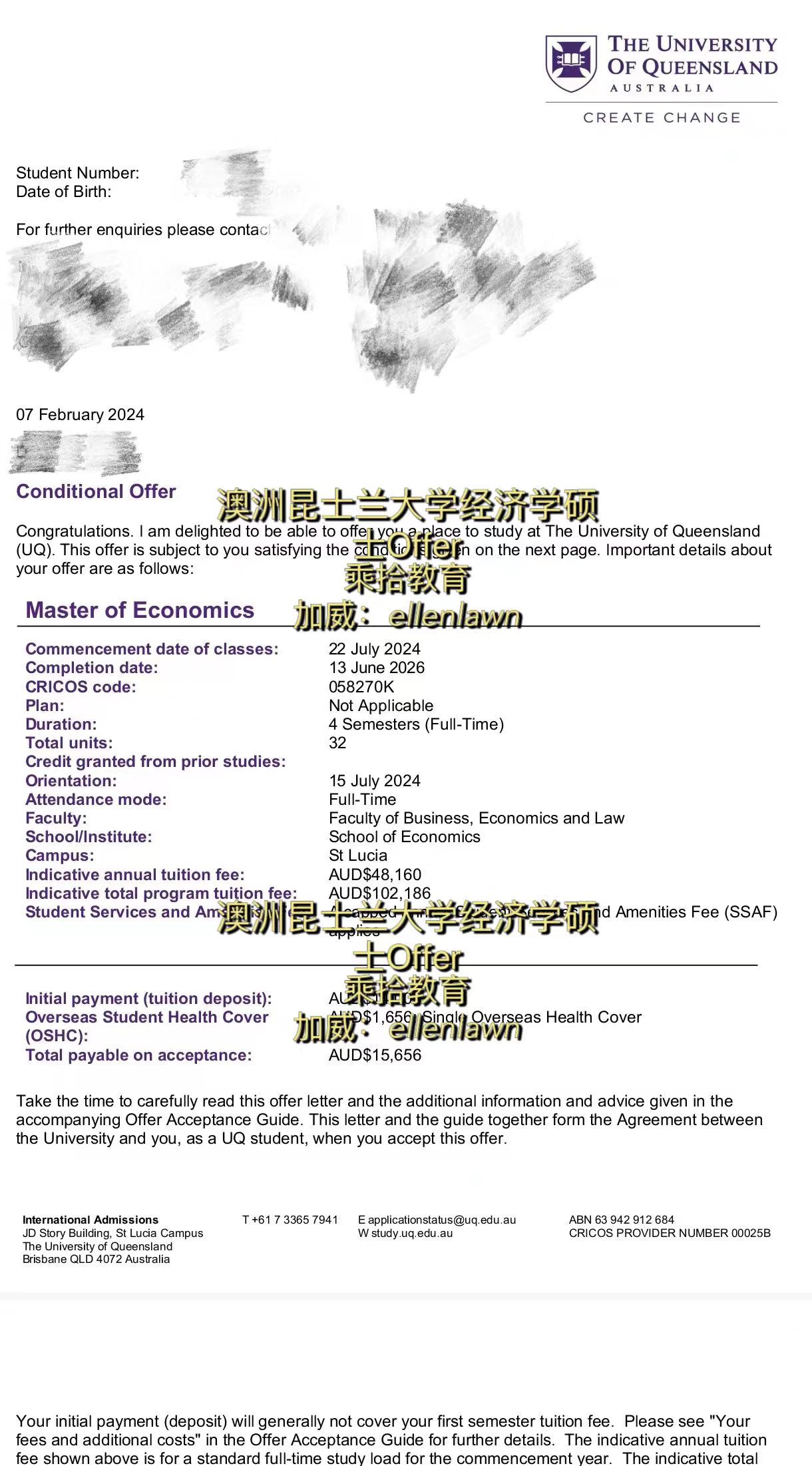 李衕學斬穫澳洲崑士蘭大學經濟學碩士offer!