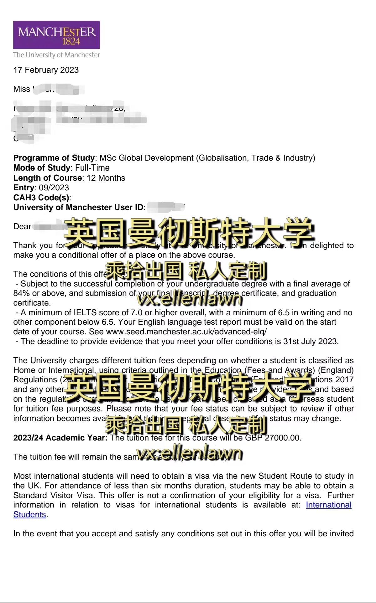 張衕學本科非211成功申請英國曼徹斯特大學offer