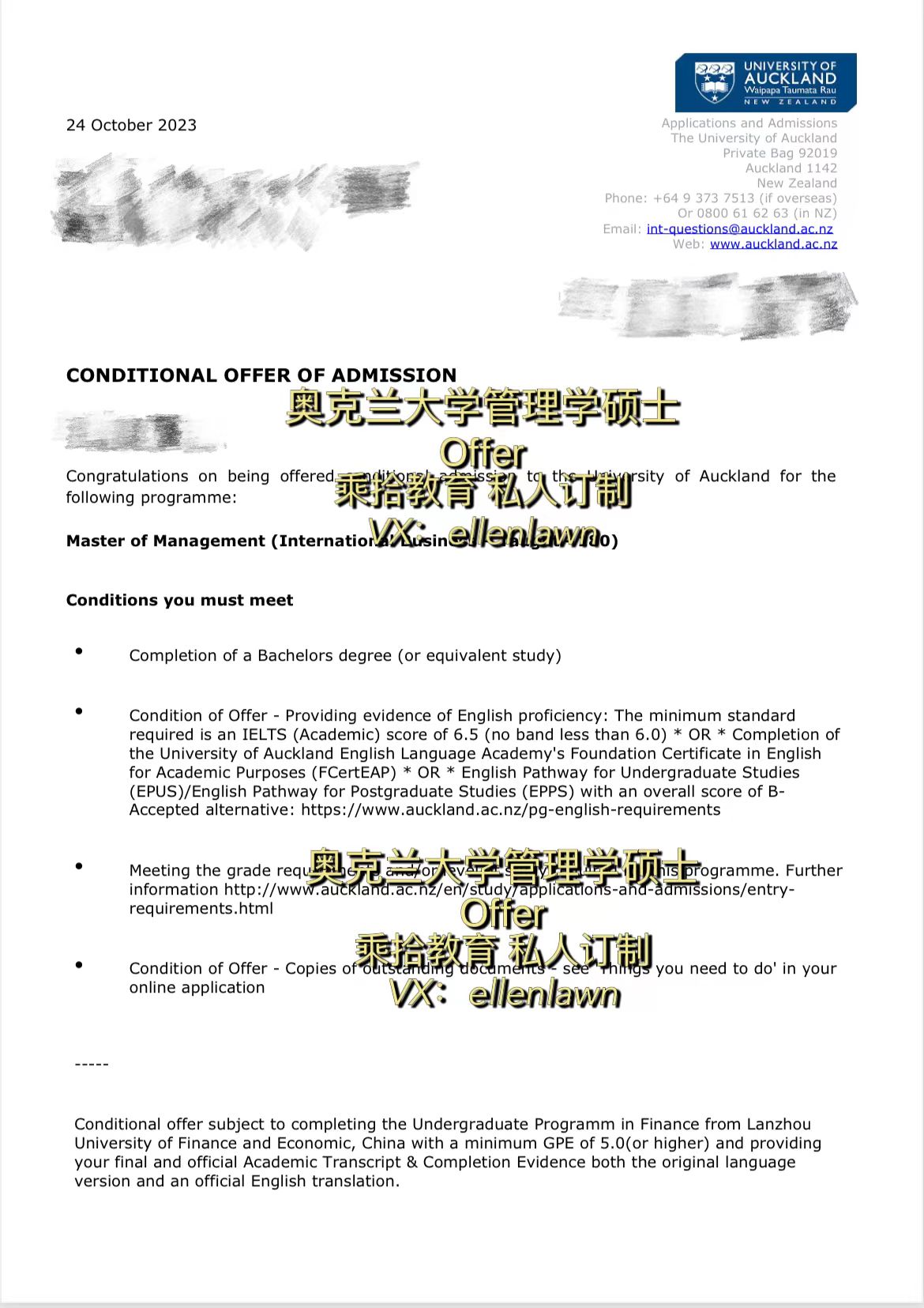 李衕學斬穫奧剋蘭大學管理學碩士offer!