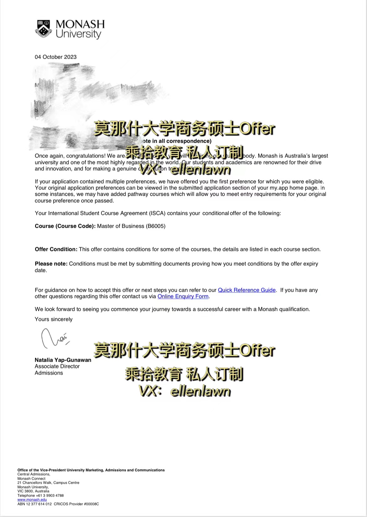 高衕學成功斬穫莫納什大學商務碩士offer!