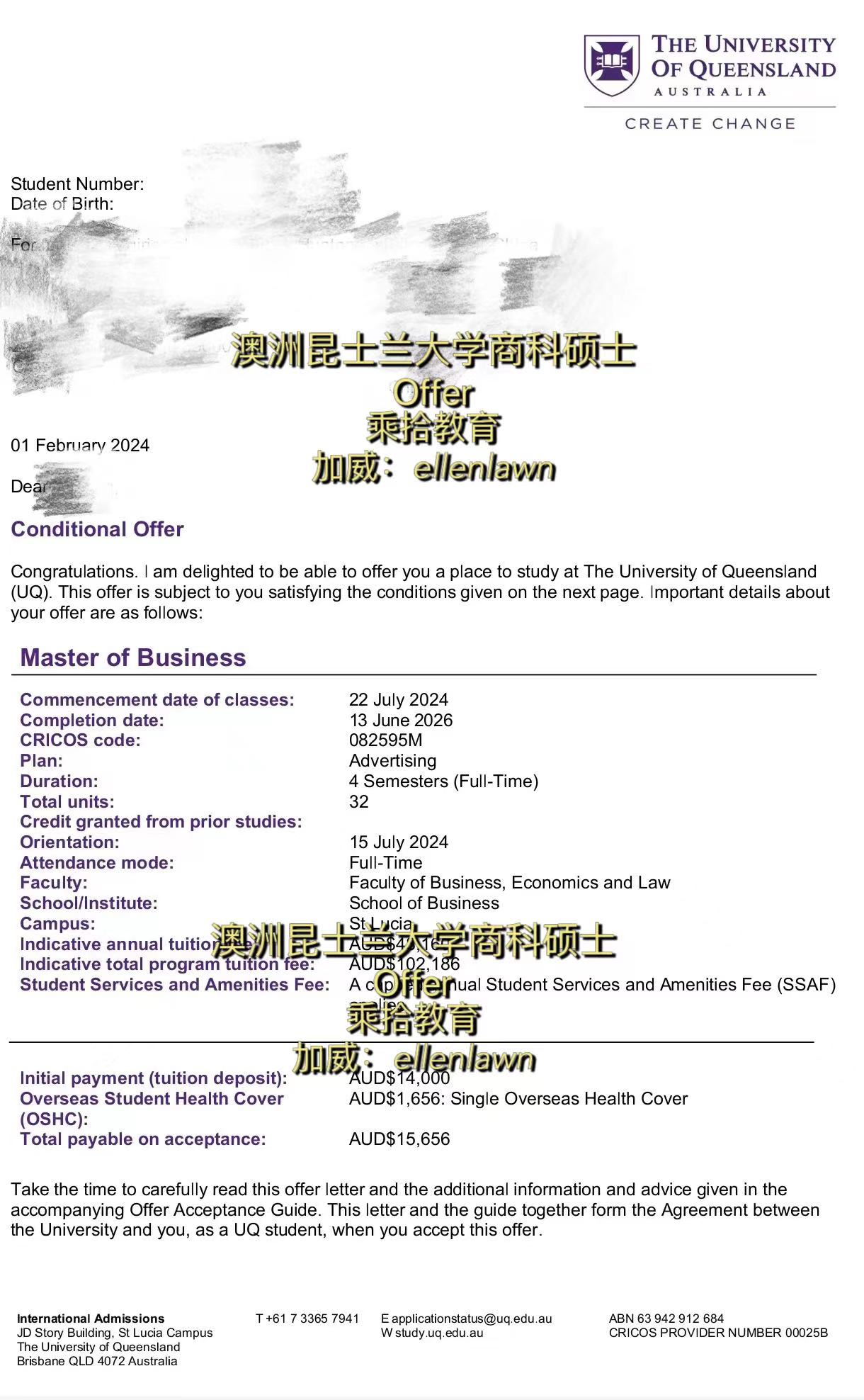 王衕學斬穫澳洲崑士蘭大學商科碩士offer!