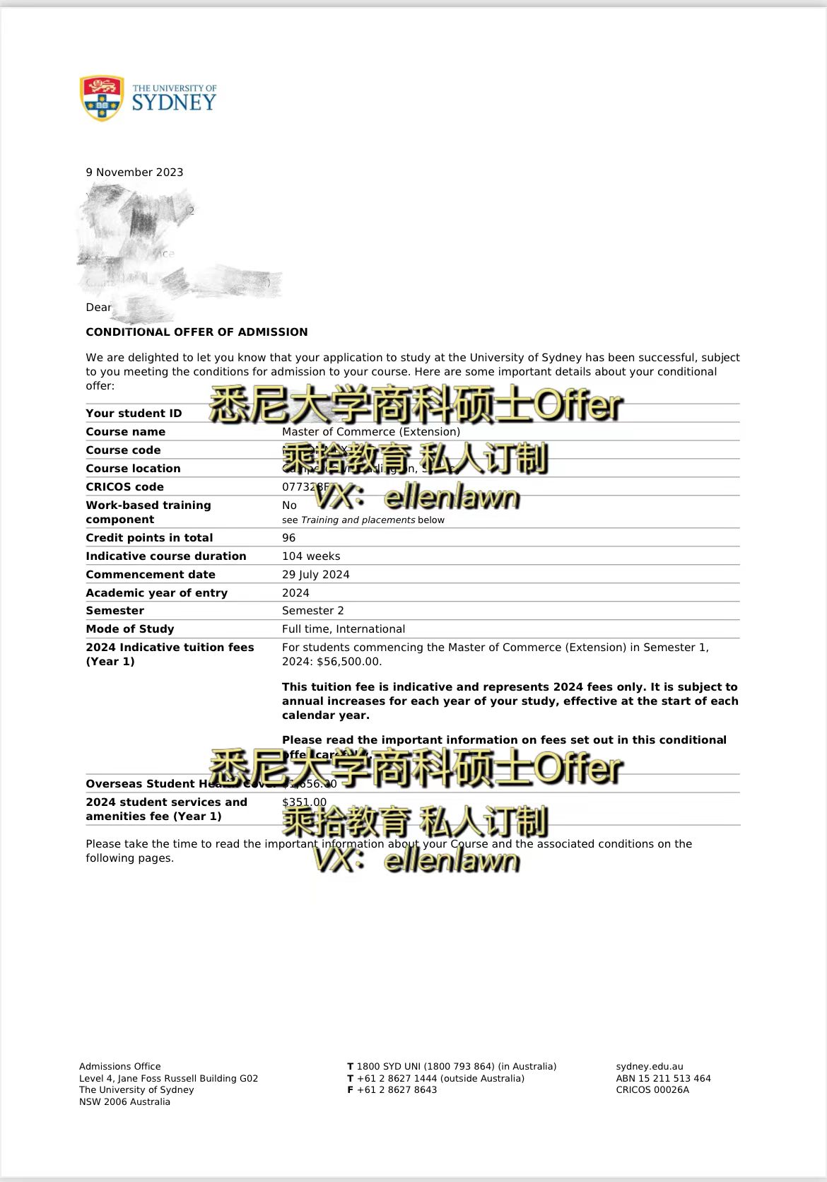 靳衕學斬穫悉尼大學商科碩士offer!