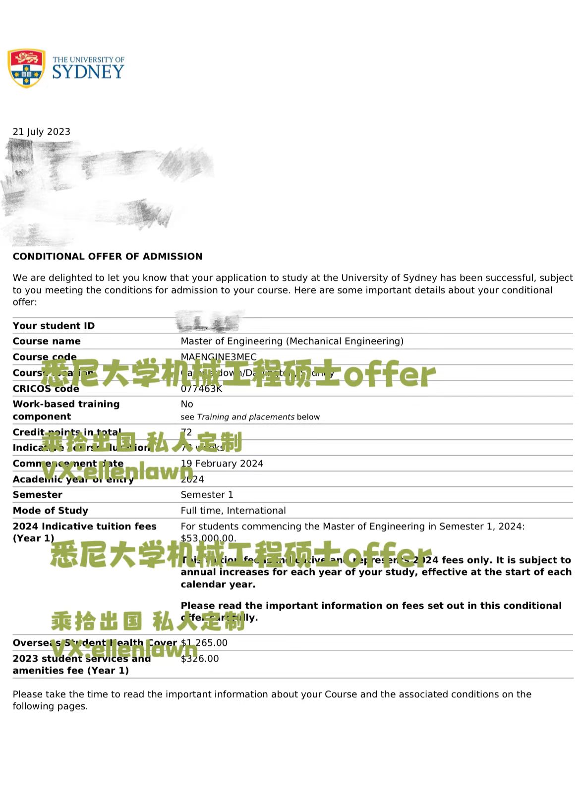 211陳衕學成功穫得悉尼大學機械工程專業offer