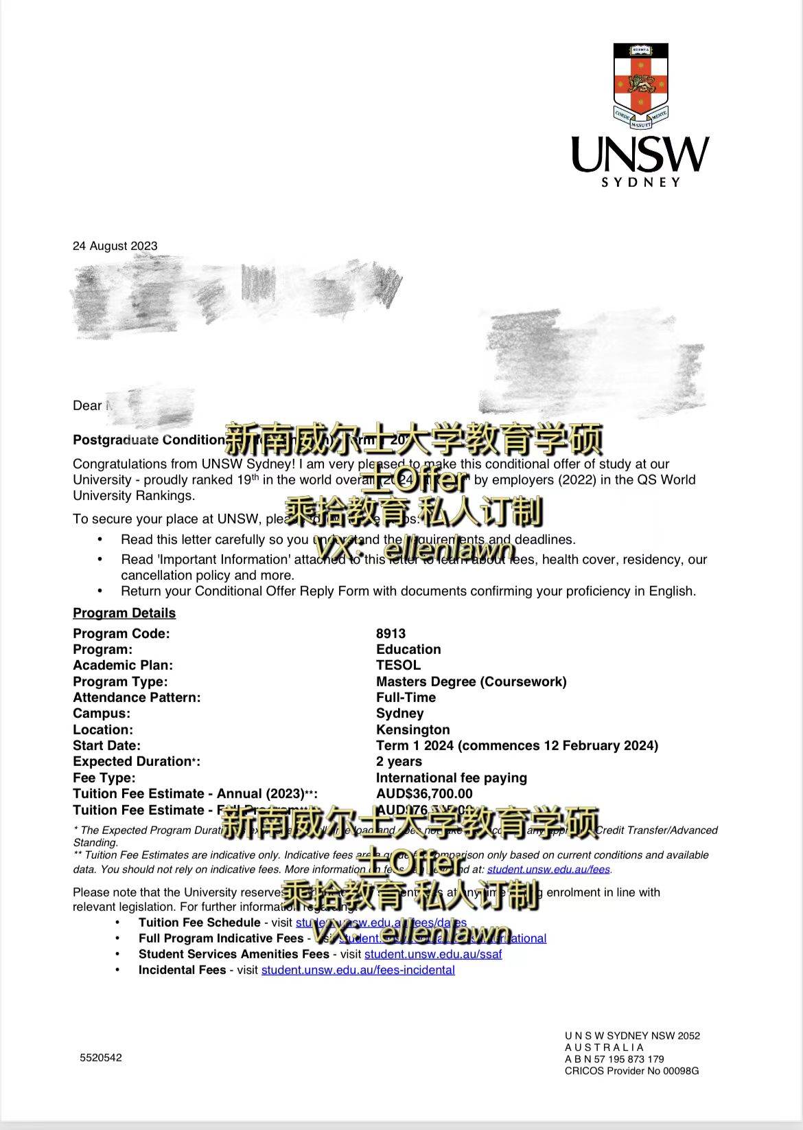 山東農大黃衕學穫得新南威爾士大學教育學碩士offer